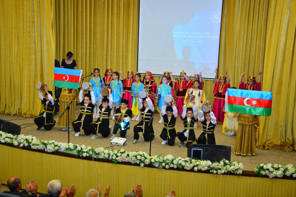 Heydər Əliyev Mərkəzinin həyətində Ulu Öndər Heydər Əliyevin xatirəsinə həsr olunmuş rəsm və kitab sərgiləri təşkil olunub, məktəbəqədər təhsil müəssisələrinin uşaqlarının və məktəblilərin ifasında ədəbi-bədii kompozisiyalar nümayiş etdirilib.