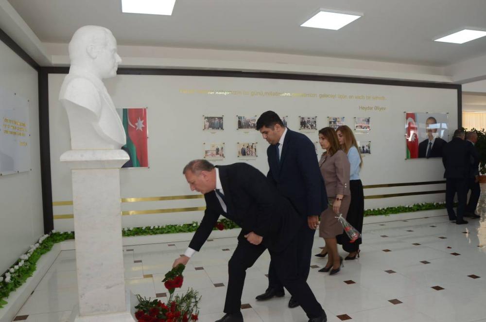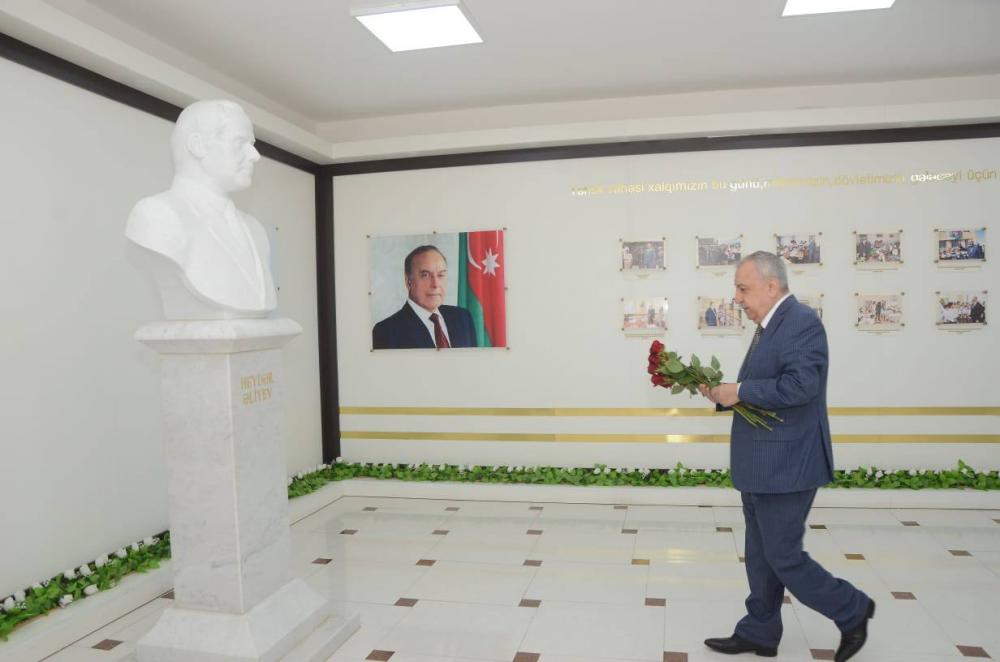 Əvvəlcə tədbir iştirakçıları tərəfindən Abşeron rayon St.Sumqayıt ərazisində fəaliyyət göstərən rayonun Mirağa Əliyev adına Hal kənd tam orta məktəbinin foyesində Ümummilli lider Heydər Əliyevin büstü önünə gül dəstələri qoyuldu, Ulu Öndərin əziz xatirəsi ehtiramla yad edildi.