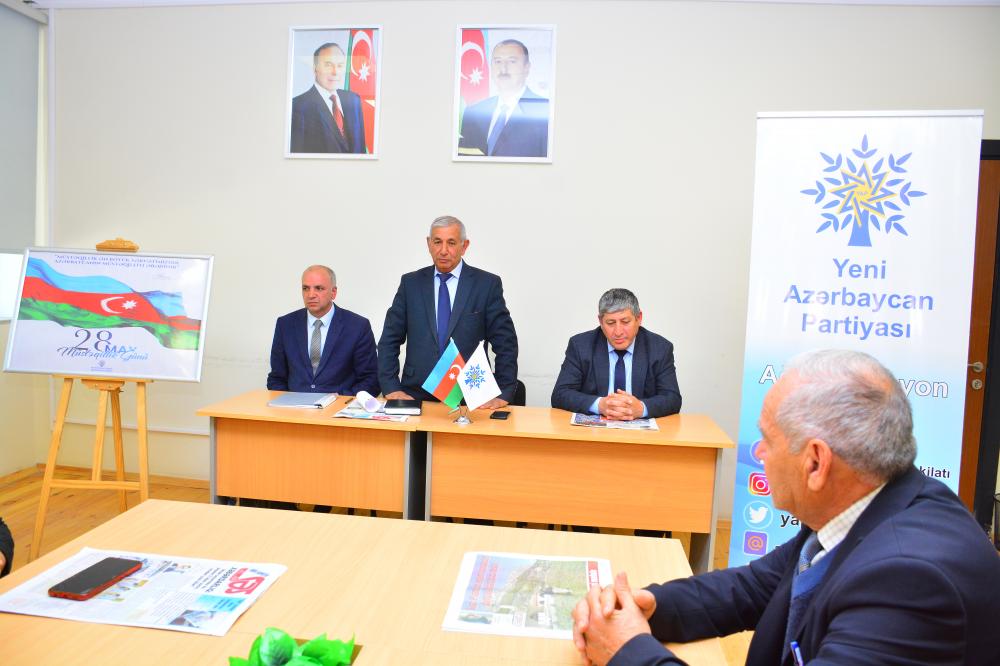 Tədbiri giriş sözü ilə açan “Muğanlı kənd” Ərazi Partiya Təşkilatının sədri Nəbi Mursaquliyev bildirib ki, 28 May - Respublika Günü şanlı tariximizə qızıl hərflərlə həkk olunmuş, hər bir Azərbaycan vətəndaşının qürur mənbəyi olan bir gündür. 1918-ci il mayın 28-də mürəkkəb siyasi hərbi-şəraitdə əsarət altında yaşayan, tarixi, mədəniyyəti, dili, dini sıxışdırılan Azərbaycan xalqı özünün və Şərqin ilk demokratik, hüquqi, dünyəvi və parlamentli respublikasını yaradıb.