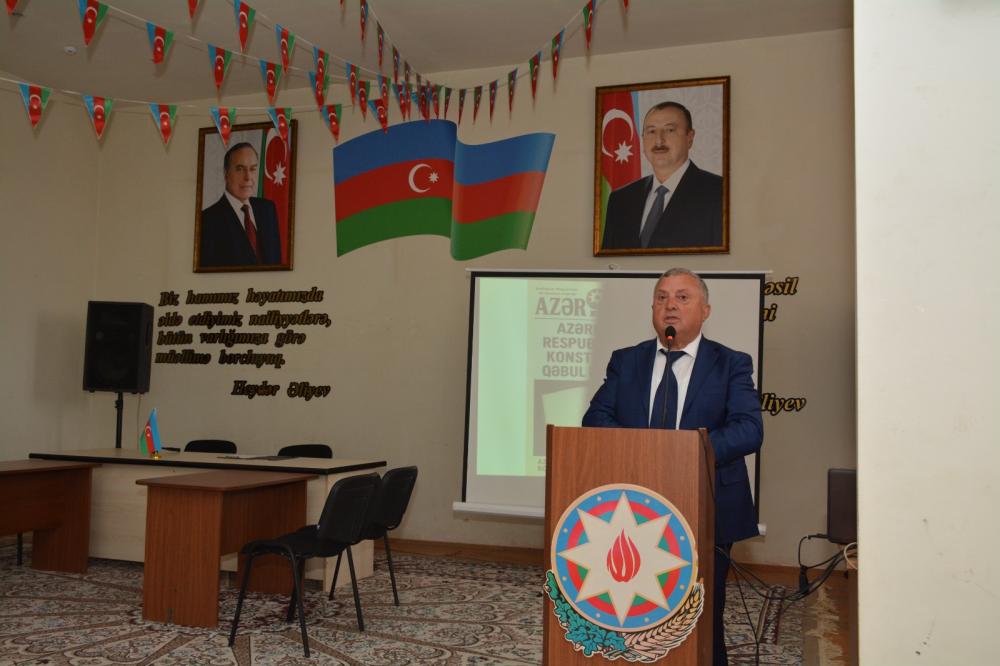 Tədbirdə çıxış edən YAP Qaradağ rayon təşkilatının sədri Qafar Əliyev "Konstitusiya və Suverenlik İli"nin təsis edilməsinin əhəmiyyətindən danışıb, Konstitusiya və suverenlik haqqında tarixi faktlara əsaslanan məlumatlarla çıxış edərək şagirdləri məlumatlandırıb. Qafar Əliyev bildirib ki, Prezident İlham Əliyevin Sərəncamı ilə 2025-ci ilin Azərbaycanda "Konstitusiya və Suverenlik ili" elan olunması ölkəmizin müstəqillik tarixinə, hüquqi dövlət quruculuğuna və suverenlik prinsiplərinə dövlət başçısı tərəfindən verilən yüksək qiymətin təcəssümüdür. O, müstəqil Azərbaycan Respublikasının 1995-ci il noyabrın 12-də ümumxalq səsverməsi yolu ilə qəbul olunan Konstitusiyasının Ulu öndər Heydər Əliyevin şah əsəri olduğunu, bu sənədin müasir dövlətin və vətəndaş cəmiyyəti quruculuğunun hüquqi bünövrəsini təşkil etdiyini bildirib.