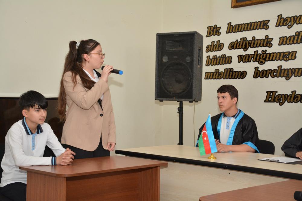 Sonra şagirdlərin ifasında “Konstutisiya və Syuverenlik İli”nə həsr olunmuş şeirlər səsləndirilib, mahnılar ifa olunub, səhnəciklər göstərilib. Tədbirdə 2-ci b sinif şagirdi Əliyeva Humrayın "Bayraq" şeirini söyləyib. "Mətbuat və media -1995-ci ildə", "Suverenlik ağacı", şagirdlərin ingilis dilində Konstitusiya və suverenlik haqqında təqdimatı və video-çarx, "Məktəb məhkəməsi" kimi səhnəciklər göstərilib.