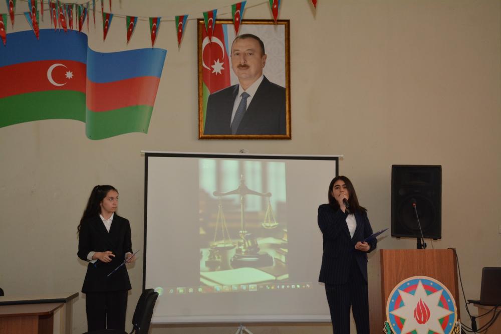 30.05.2025-ci ildə "Konstitusiya və Suverenlik İli" və 18 may-18 iyun hüquq aylığı ilə əlaqədar Ələt qəsəbəsindəki Əhməd Zeynallı adına 302 №-li məktəbdə "Hüquqlarımızı qoruyaq"adlı tədbir keçirilib.