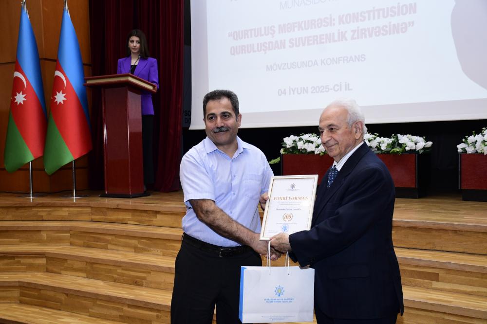 İyunun 4-də Yeni Azərbaycan Partiyası (YAP) Veteranlar Şurasının, YAP Nizami rayon təşkilatının, Nizami Rayon İcra Hakimiyyətinin və “Türk Ağsaqqalları arasında Əlaqələrin İnkişafı” İctimai Birliyinin birgə təşkilatçılığı ilə “Konstitusiya və Suverenlik İli” çərçivəsində 15 İyun – Milli Qurtuluş Gününə həsr olunmuş “Qurtuluş məfkurəsi: konstitusion quruluşdan suverenlik zirvəsinə” mövzusunda konfrans keçirilib.