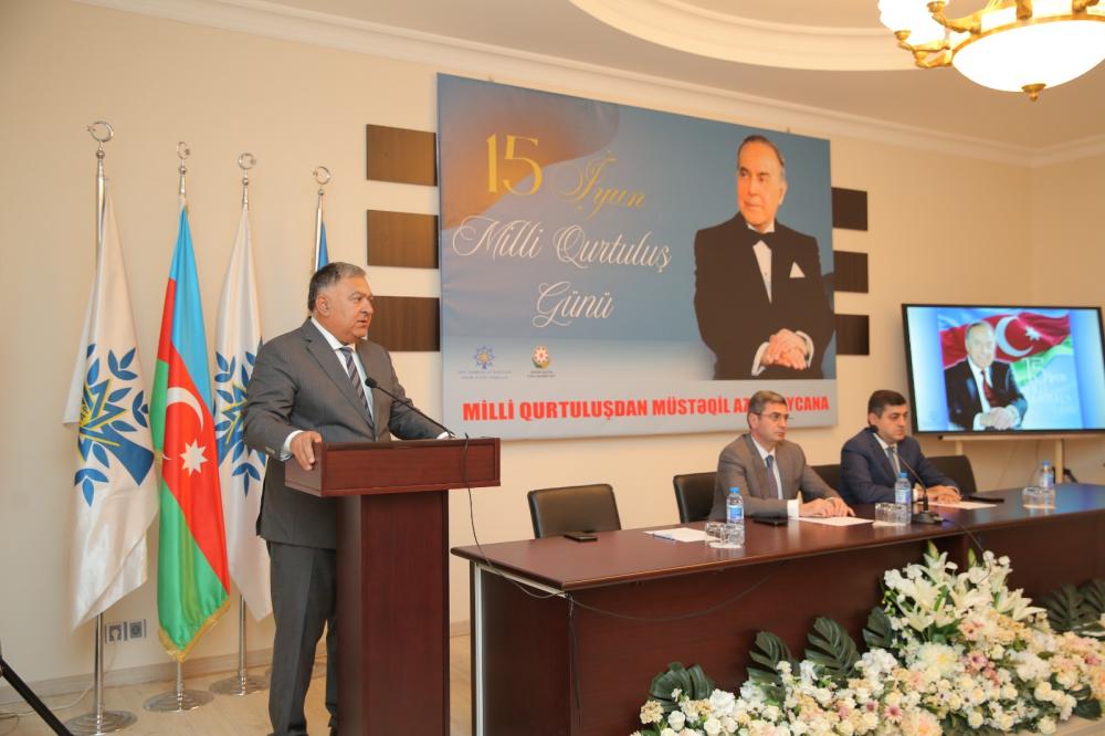 Tədbiri giriş sözü ilə açan YAP Xəzər rayon təşkilatının sədri Namiq Əhmədov bildirib ki, tarixdə elə taleyüklü məqamlar olur ki, xalqın və dövlətin gələcəyini müəyyən edir, sabitlik və tərəqqi yolunda əsaslı dönüş yaradır. Azərbaycan üçün belə mühüm mərhələlərdən biri 1993-cü ilin iyun ayında baş verdi. O illərdə ölkə ağır siyasi böhranla üz-üzə qalmış, vətəndaş qarşıdurmaları, separatçılıq meyilləri, iqtisadi tənəzzül və Ermənistanın hərbi təcavüzü cəmiyyətdə dərin təşviş və ümidsizlik yaratmışdı. Dövlət institutları zəifləmiş, idarəetmədə xaos və özbaşınalıq hökm sürürdü. Belə bir həssas və təhlükəli şəraitdə xalqın təkidli tələbi ilə Ümummilli Lider Heydər Əliyevin siyasi hakimiyyətə qayıdışı dövlətçiliyin xilasına yönəlmiş qətiyyətli addım idi. 1993-cü il iyunun 15-də Ulu Öndərin Azərbaycan Respublikası Ali Sovetinin sədri seçilməsi ilə ölkədə yeni dövr başlandı. 15 İyun – Milli Qurtuluş Günü məhz bu xilaskarlıq missiyasının, milli həmrəylik və güclü iradənin rəmzinə çevrildi. Həmin gün müasir, hüquqi və dayanıqlı dövlətçilik ənənələrinin bərqərar edildiyi, sabitlik və inkişaf yoluna qədəm qoyulduğu bir tarix kimi yaddaşlara həkk olundu.