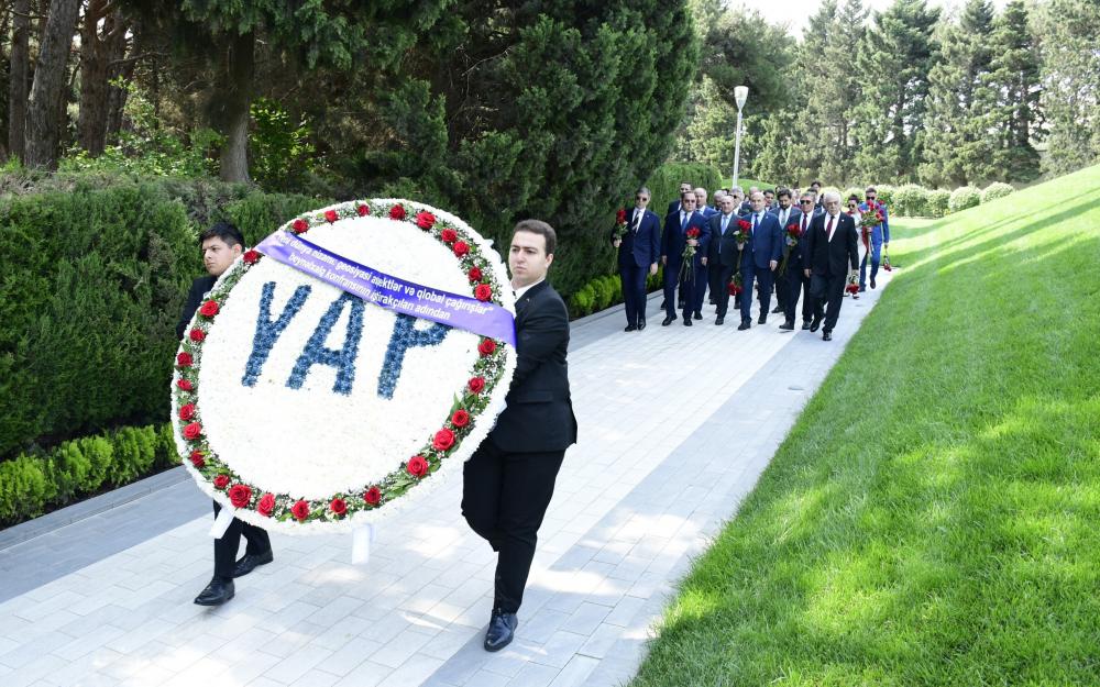 Yeni Azərbaycan Partiyasının təşkilatçılığı ilə iyunun 15-də Şuşa şəhərində “Yeni dünya nizamı: geosiyasi aspektlər və qlobal çağırışlar” mövzusunda keçiriləcək beynəlxalq konfransın iştirakçıları iyunun 14-də Fəxri xiyabanda müasir müstəqil Azərbaycan dövlətinin qurucusu, xalqımızın Ümummilli Lideri Heydər Əliyevin xatirəsini ehtiramla yad edərək məzarı önünə əklil və gül dəstələri qoyublar.
