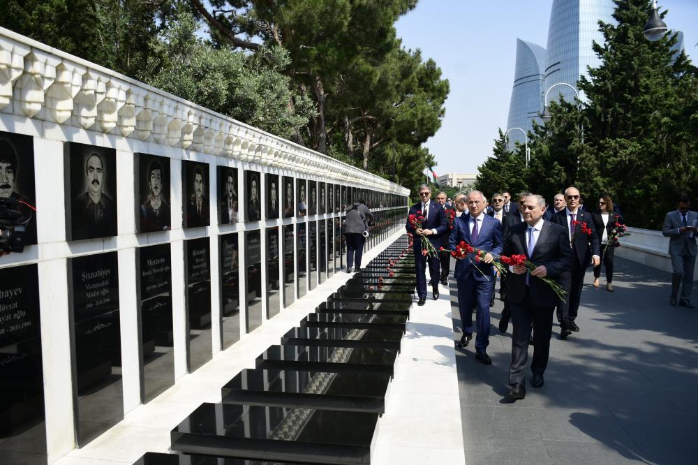 Sonra konfrans iştirakçıları Şəhidlər Xiyabanını ziyarət ediblər. Azərbaycanın azadlığı və müstəqilliyi uğrunda mübarizədə canlarını qurban vermiş qəhrəman Vətən övladlarının xatirəsi ehtiramla yad edilib, məzarları üzərinə tər güllər düzülüb, “Əbədi məşəl” abidəsinin önünə əklil qoyulub.