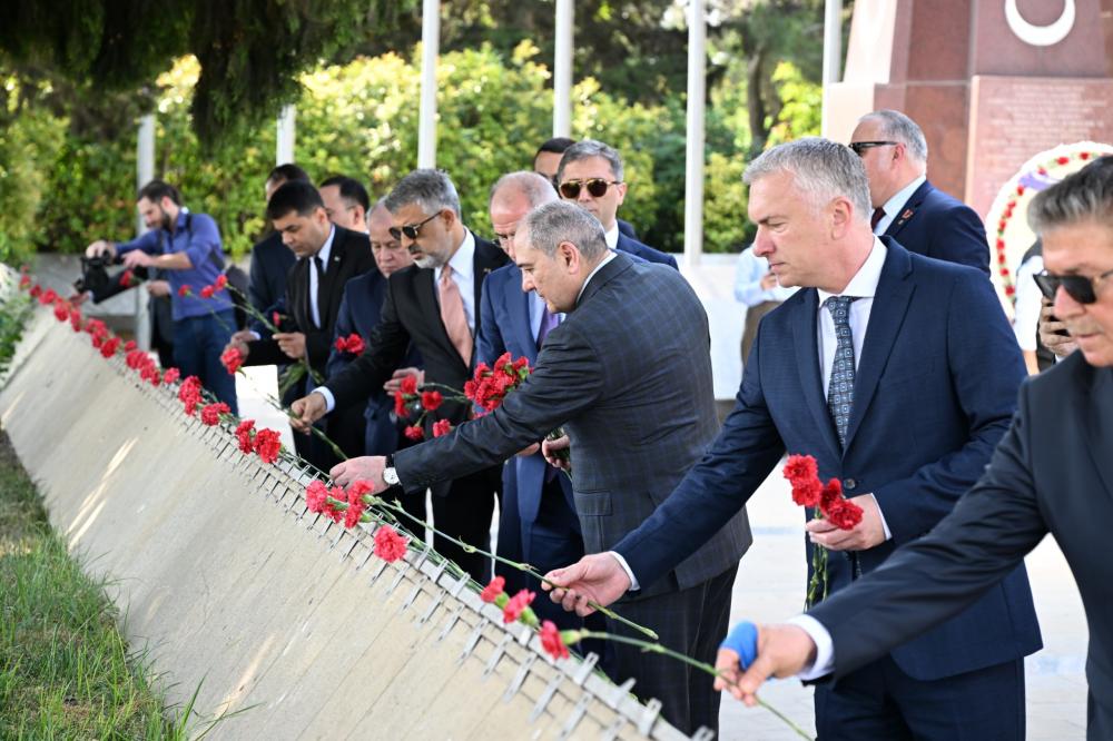Daha sonra “Türk şəhidliyi” abidəsi ziyarət edilib. Azərbaycanın istiqlaliyyəti uğrunda canlarından keçmiş, Azərbaycan-Türkiyə qardaşlığının əbədiliyini və sarsılmazlığını əks etdirən bu məzarlıqda uyuyan qəhrəman türk qardaşlarımızın xatirəsi anılıb, abidənin önünə əklil qoyulub, gül dəstələri düzülüb.