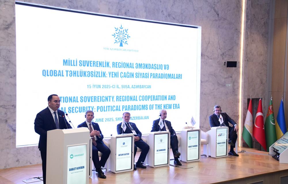 Qazaxıstanın “AMANAT” Partiyasının İcra katibi Daulet Kəribek çıxışında Azərbaycanın mədəniyyət paytaxtı, Qarabağın ürəyi, tarixi ədalətin bərpasının simvolu olan Şuşada yenidən görüşməkdən məmnunluq duyduğunu söyləyib. O qeyd edib ki, Şuşa artıq nüfuzlu beynəlxalq konfransların keçirildiyi məkana çevrilib: “Bu, Şuşanın dialoq, həmrəylik və əməkdaşlıq platforması kimi artan rolunun bariz göstəricisidir. Konfransın Azərbaycan xalqı üçün müstəsna tarixi əhəmiyyətə malik Milli Qurtuluş Günündə keçirilməsi də rəmzi xarakter daşıyır. Məhz 32 il əvvəl Heydər Əliyev Azərbaycan xalqını və dövlətçiliyini parçalanmaqdan xilas edib, ictimai-siyasi sabitliyi bərpa edib. Onun müdrik rəhbərliyi altında ölkədə dərin siyasi və sosial-iqtisadi islahatlar həyata keçirildi. Azərbaycan böyük irəliləyişə nail oldu və dünya birliyinin nüfuzlu üzvünə çevrildi. Heydər Əliyevin həyatı xalqa fədakar xidmət nümunəsidir”.