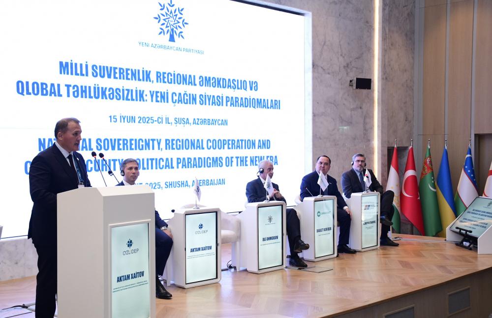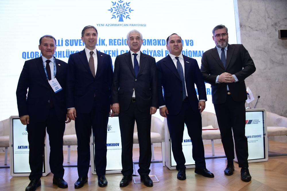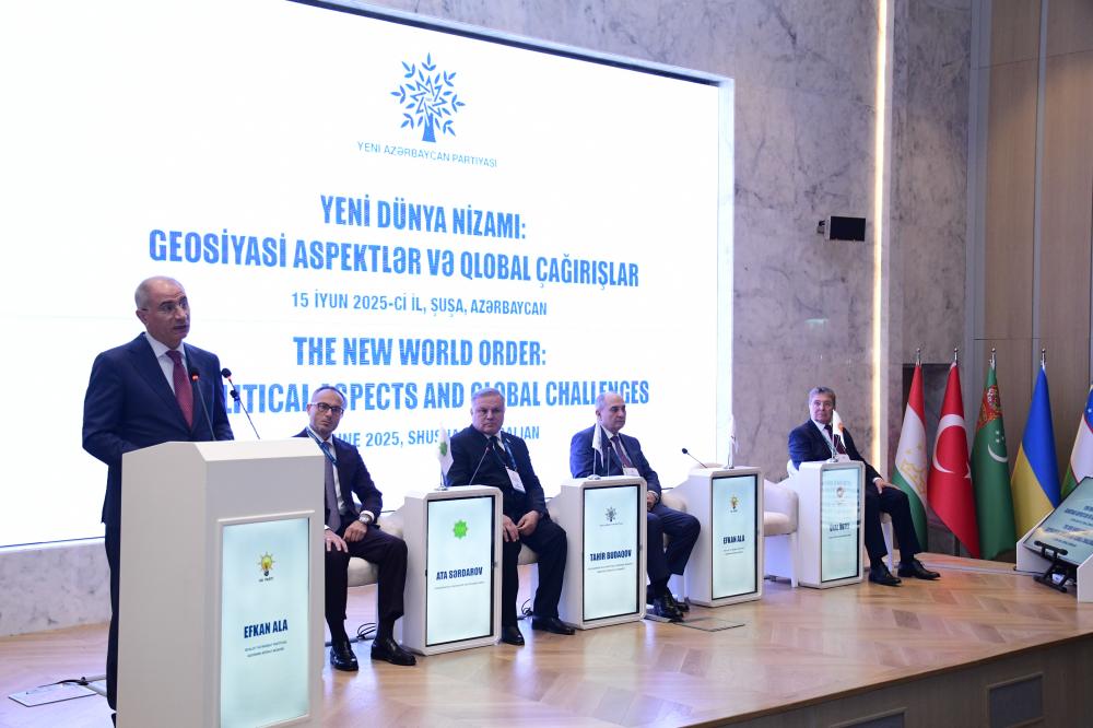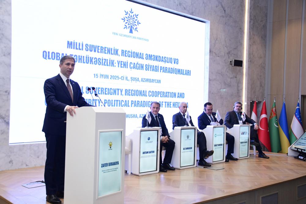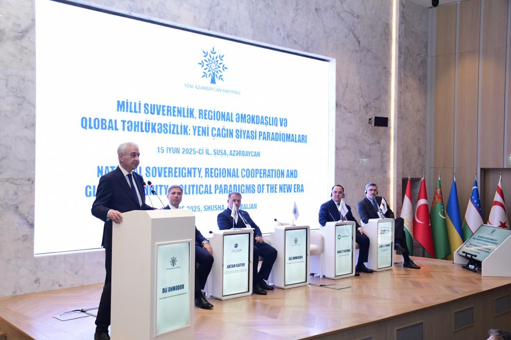 Türkiyənin Ədalət və İnkişaf Partiyası Sədrinin xarici əlaqələr üzrə müavini, Türkiyə Böyük Millət Məclisinin üzvü Zafer Sırakayanın moderatorluğu ilə “Milli suverenlik, regional əməkdaşlıq və qlobal təhlükəsizlik: yeni çağın siyasi paradiqmaları” mövzusunda keçirilən panel sessiyasında çıxış edən Yeni Azərbaycan Partiyası Sədrinin müavini, Azərbaycan Respublikası Milli Məclisi sədrinin birinci müavini Əli Əhmədov bildirib ki, Yeni Azərbaycan Partiyasının təşkil etdiyi konfrans son dərəcə əlamətdar bir gündə və məkanda keçirilir. Onun sözlərinə görə, xalqımız Ümummilli Lider Heydər Əliyevin hakimiyyətə qayıdışının – Milli Qurtuluş Gününün növbəti ildönümünü böyük hörmət və ehtiramla qeyd edir: “Əgər biz müasir Azərbaycanın həyatının ən başlıca siyasi simvollarının nədən ibarət olduğu haqqında sual versək, iki başlıca amili qeyd edə bilərik. Birincisi Heydər Əliyevin yaratdığı qüdrətli Azərbaycan - müstəqil Azərbaycan dövləti və dövlətçiliyidir. İkincisi isə bu dövlətin Prezident İlham Əliyevin rəhbərliyi altında qazandığı əzəmətli Qələbədir. Bu Qələbənin nəticəsi olaraq bu gün biz Şuşa şəhərində bu gözəl tədbiri keçirə bilirik. Beləliklə, Qurtuluş məfkurəsi yaşayır, Heydər Əliyev siyasəti yaşayır, Heydər Əliyev siyasəti Prezident İlham Əliyevin həyata keçirdiyi doktrinada özünün ətraflı ifadəsini tapır, Azərbaycana yeni uğurlar və qələbələr gətirir. Dünən də belə olub, bu gün də belədir, gələcəkdə də belə olacaq”.
