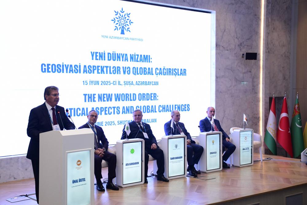 Ü.Üstel qeyd edib ki, müasir dünyada milli suverenlik anlayışı sərhədləri mühafizə etməklə məhdudlaşmır, paralel olaraq millətin kimliyini, dəyərlərini və iradəsini qorumaqla tamamlanır. "Türk dövlətləri olaraq biz bunu bacardıq. Biz həm suverenliyimizi, həm də milli kimliyimizi, iradəmizi qoruduq. Şuşada keçirilən konfransın “Yeni dünya nizamı: geosiyasi aspektlər və qlobal çağırışlar” mövzusuna həsr olunması həm nəzəri, həm də praktik baxımdan böyük əhəmiyyət daşıyır. Bu mövzu bizə bir daha göstərir ki, qarşılaşdığımız təhdidlər çoxşaxəlidir və əməkdaşlıq modellərimiz güclü olmalıdır", - deyə o vurğulayıb.