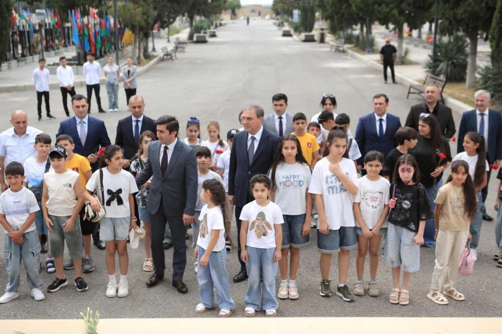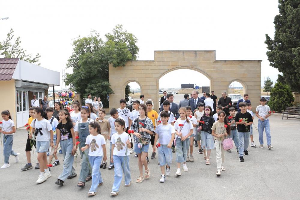 “Yay məktəbi”nin ilk günu şəhid övladları Gəncə Şəhər İcra Hakimiyyətinin başçısı Niyazi Bayramov, YAP İdarə Heyətinin üzvü, partiyanın Gəncə şəhər təşkilatının sədri Bayram Aslanov və pariya fəalları ilə birlikdə şəhər Şəhidlər Xiyabanına gediblər. Onlar ölkəmizin azadlığı uğrunda mübarizədə canlarından keçmiş qəhrəman Vətən övladlarının məzarları üzərinə tər çiçəklər düzüblər, həmçinin “Əbədi məşəl” abidəsini ziyarət edib, xatirə şəkilləri çəkdiriblər.