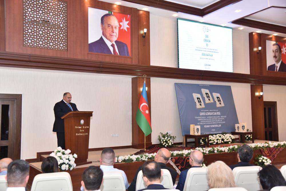 Tədbiri giriş sözü ilə açan RİH başçısının səlahiyyətlərini müvəqqəti icra edən, başçının müavini Zahid Xəlilov son iki əsrdə Qafqazda azərbaycanlılara qarşı məqsədyönlü şəkildə həyata keçirilmiş etnik təmizləmə və soyqırımı siyasəti nəticəsində xalqımızın ağır məhrumiyyətlərə, milli faciə və məşəqqətlərə məruz qalması barədə geniş məlumat verərək, mərhələ-mərhələ gerçəkləşdirilən belə qeyri-insani siyasət nəticəsində azərbaycanlıların indi Ermənistan adlandırılan ərazidən — min illər boyu yaşadıqları öz doğma tarixi-etnik torpaqlarından didərgin salınaraq kütləvi qətl və qırğınlara məruz qaldığını, xalqımıza məxsus minlərlə tarixi-mədəni abidə və yaşayış məskəninin dağıdılıb viran edildiyini vurğuladı. Azərbaycan xalqına qarşı dəfələrlə törədilmiş və uzun illərdən bəri öz siyasi-hüquqi qiymətini almamış soyqırımı da tarixin açılmamış səhifələrindən biri olduğunu qeyd edərək, azərbaycanlıların Qərbi Azərbaycandan kütləvi deportasiyasına hüquqi-siyasi qiymətin ilk dəfə Ümummilli Lider Heydər Əliyev tərəfindən verildiyini, Ulu Öndərin “1948-1953-cü illərdə azərbaycanlıların Ermənistan SSRİ ərazisindən, tarixi-etnik torpaqlarından kütləvi surətdə deportasiyası haqqında” 18 dekabr 1997-ci il tarixli, “Azərbaycanlıların Soyqırımı haqqında” 26 mart 1998-ci il tarixli Fərmanların böyük elmi-siyasi, tarixi əhəmiyyətə malik sənədlər olduğunu bildirdi. Natiq, çıxışına davam edərək Ulu öndərin söylədiyi “Siz gələcəkdə mütləq və mütləq gedib öz gözəl Göyçə torpağınızı da görəcəksiniz, öz doğma dağlarınızı, bulaqlarınızı, çaylarınızı da görəcəksiniz. Ata - babalarınızın qəbirlərini də görəcəksiniz. Mən buna heç şübhə etmirəm” fikirlərinin tarixi ədalətin bərpası istiqamətində bu gün Azərbaycan üçün daha aktual olduğunu vurğuladı. Qərbi Azərbaycanla bağlı həqiqətlərin araşdırılması və dünya ictimaiyyətinə çatdırılmasının dövlət siyasətinin əsas istiqamətlərindən olduğu, araşdırmaların elmi istiqamətdə aparılmasının Möhtərəm Prezidentimiz cənab İlham Əliyevin 2022-ci il dekabrın 24-də Qərbi Azərbaycan İcmasının binasındakı ziyalılarla görüşündə etdiyi proqram xarakterli çıxışından sonra daha sistemli xarakter aldığı, “Qərbi Azərbaycan irsi” kitabının tarixi yaddaşın qorunmasında mühüm rol oynadığı qeyd olundu.