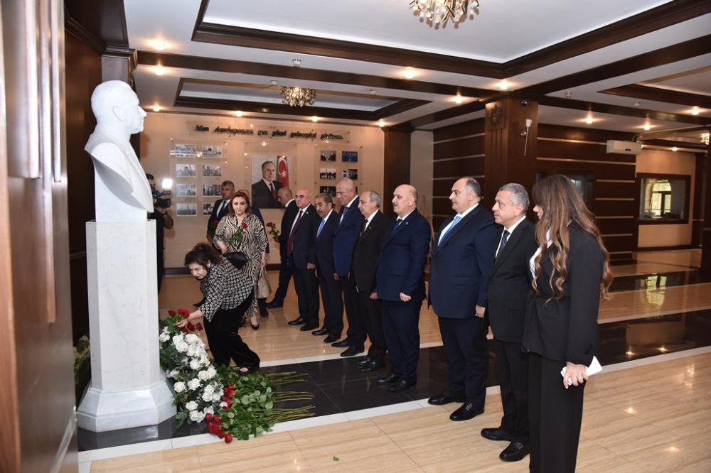 Əvvəlcə rəsmilər inzibati binanın foyesində Ümummilli Lider Heydər Əliyevin büstünü ziyarət edib, önünə gül dəstələri düzüblər.
