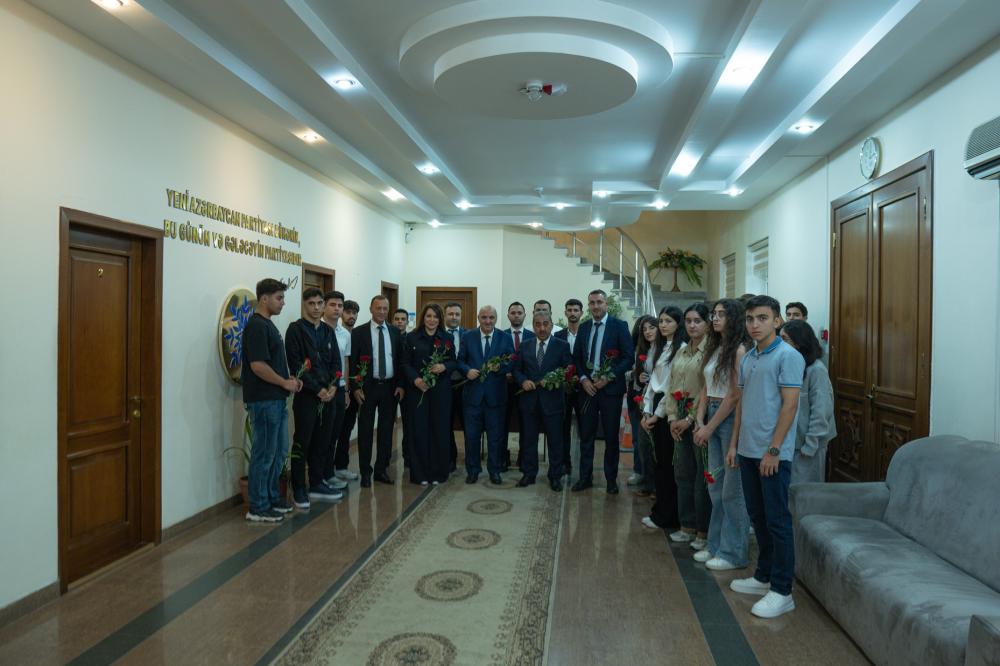 Sonda 2024–2025-ci tədris ilində ali məktəblərə qəbul imtahanlarında yüksək nəticə göstərmiş məzunlara hədiyyələr və təşəkkürnamələr təqdim olunub, tədbir iştirakçıları tələbə və valideynlərlə birlikdə xatirə şəkli çəkdiriblər.