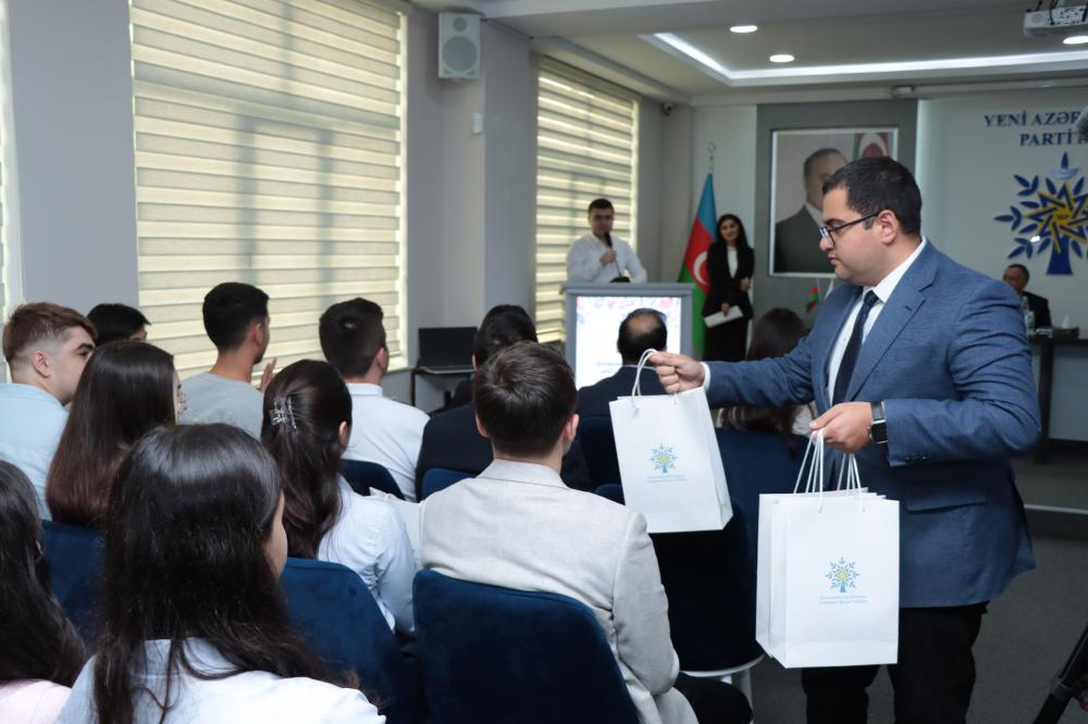 Sonda partiyanın ictimai-siyasi həyatında götərdiyi fəal iştiraka görə Məktəbəqədər və Ümumi Təhsil üzrə Dövlət Agentliyinin direktoru Eşqi Bağırova təşkilat tərəfindən təltif, yüksək bal toplayan gənclərə hədiyyələr təqdim edilib və xatirə şəkli çəkdirilib.