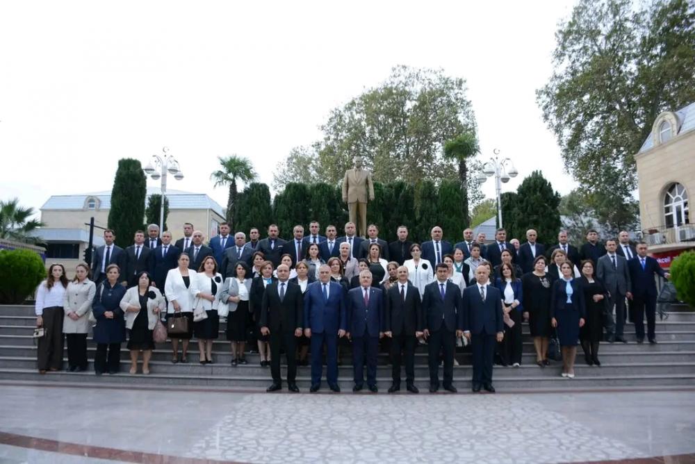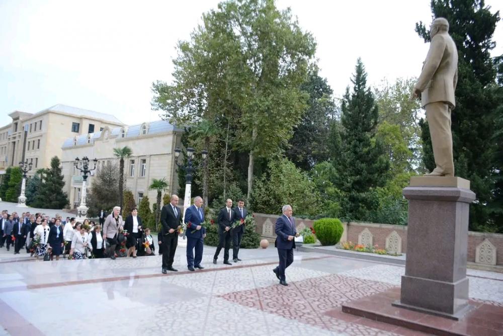 Təhsil işçiləri əvvəlcə Ümummilli liderin abidəsini ziyarət edib, önünə gül dəstələri düzüblər.
