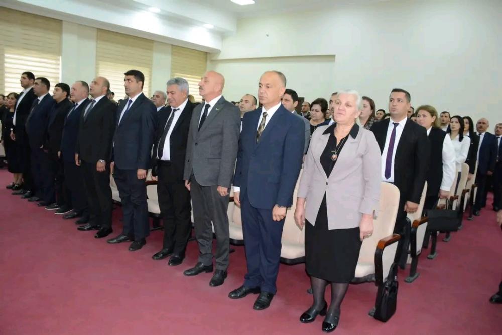 Ulu Öndər Heydər Əliyevin, eləcə də ölkəmizin ərazi bütövlüyü və suverenliyi uğrunda canlarını qurban vermiş Vətənin qəhrəman övladlarının, o cümlədən şəhid olmuş və dünyasını dəyişmiş müəllimlərin əziz xatirəsi bir dəqiqəlik sükutla yad edildikdən sonra Dövlət Himni səsləndirilib.