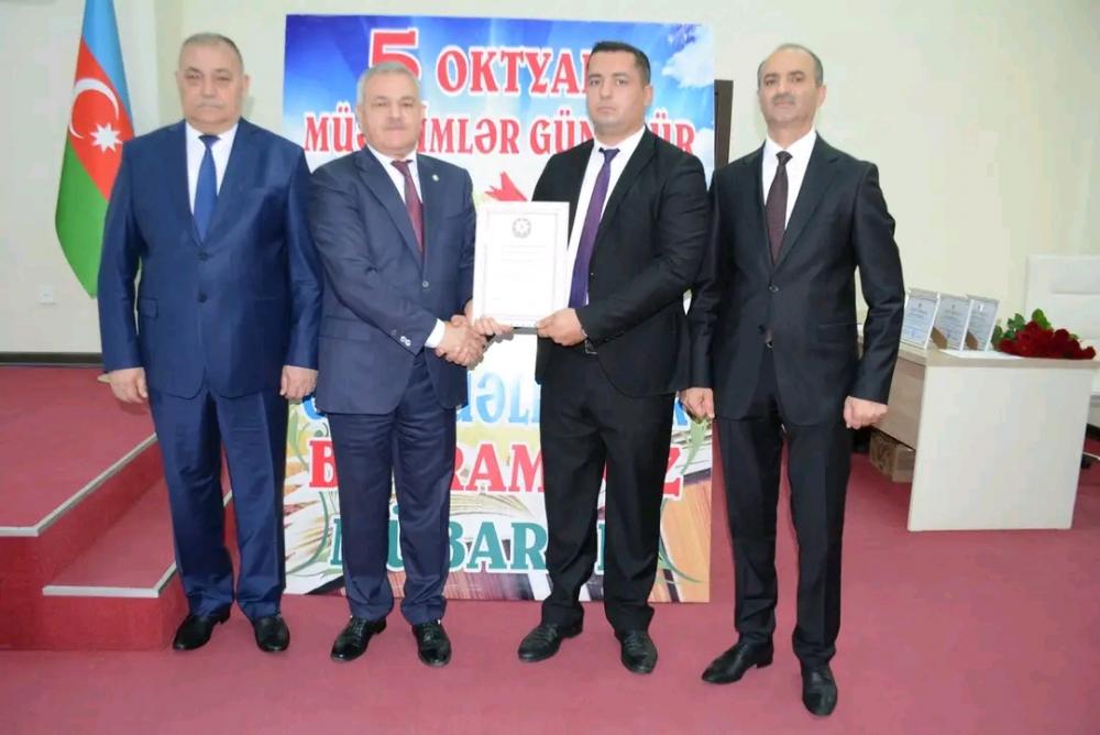 Rayon icra hakimiyyətinin başçısı Müstəqim Məmmədov 5 oktyabr - Beynəlxalq Müəllimlər Günü münasibəti ilə onları təbrik edərək, şərəfli işlərində və gələcək fəaliyyətlərində uğurlar diləyib. Bildirib ki, bu il müəllimlərimiz “Konstitusiya və Suverenlik İli”ndə daha qürurla öz bayramlarını qeyd edirlər. Çünki artıq Vətənimiz olan Azərbaycanın bütün guşələrində üçrəngli Azərbaycan Bayrağı dalğalanır.