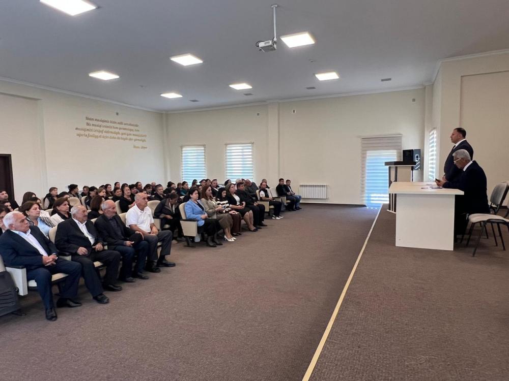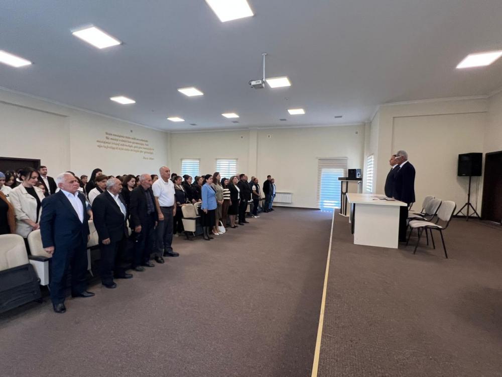 Tədbir iştirakçıları öncə müasir müstəqil Azərbaycan dövlətinin qurucusu, Ulu Öndər Heydər Əliyevin və torpaqlarımızın azadlığı uğrunda şəhidlik zirvəsinə ucalan Vətən oğullarının əziz xatirəsini bir dəqiqəlik sükutla yad ediblər.