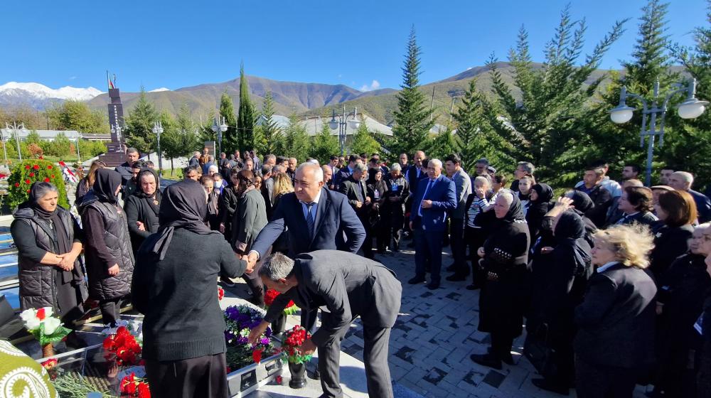 Tədbir iştirakçıları torpaqlarımızın işğaldan azad edilməsi uğrunda gedən döyüşlərdə qəhrəmancasına vuruşaraq şəhadətə yüksələn Qənimətov Ətraf Oktay oğlunun və digər şəhidlərin məzarlarını ziyarət edərək, onların əziz xatirəsini ehtiramla yad ediblər.