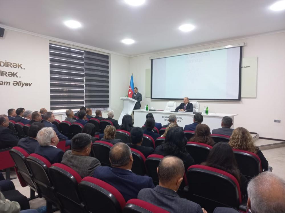 / / Beyləqan rayonunda “Konstitusiya və Suverenlik İli” çərçivəsində Yeni Azərbaycan Partiyasının yaradılmasının 33 illiyinə həsr olunmuş tədbir keçirildi