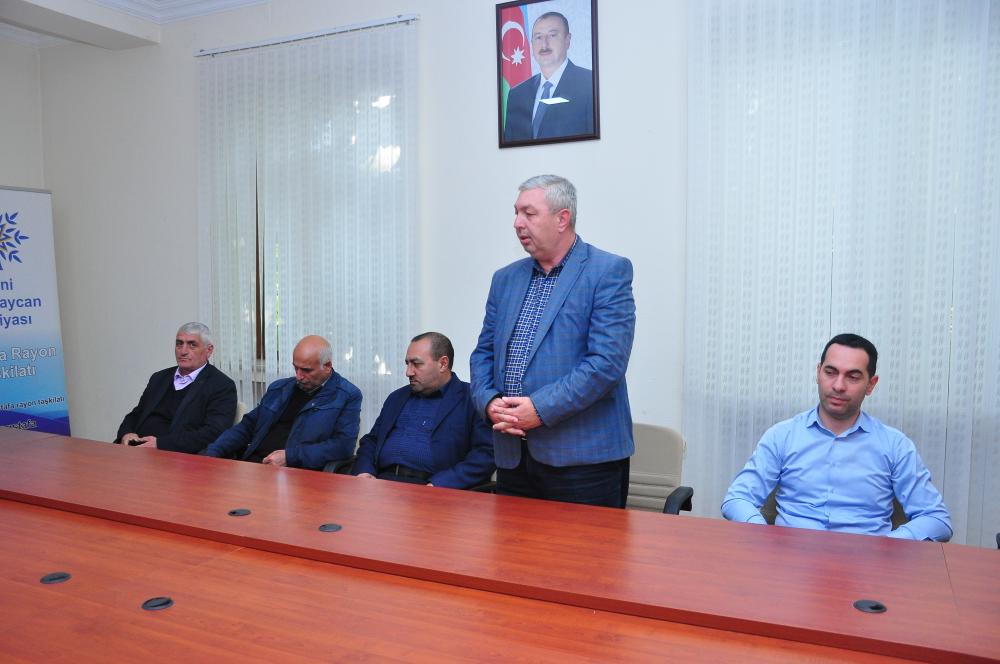 Tədbiri giriş sözü ilə açan “Rafiq Alıcanov 8A” Ərazi Partiya Təşkilatın sədri Elvin Musayev bildirib ki, Yeni Azərbaycan Partiyasının yaranması tarixi hadisə idi. Partiya dövrün zərurətindən və cəmiyyətin aydın, ziyalı təbəqəsinin təşəbbüsü ilə yaradılıb. Yeni Azərbaycan Partiyası tarixin məngənəsindən, taleyin sınağından üzüağ çıxaraq milli məfhuma çevirilib.