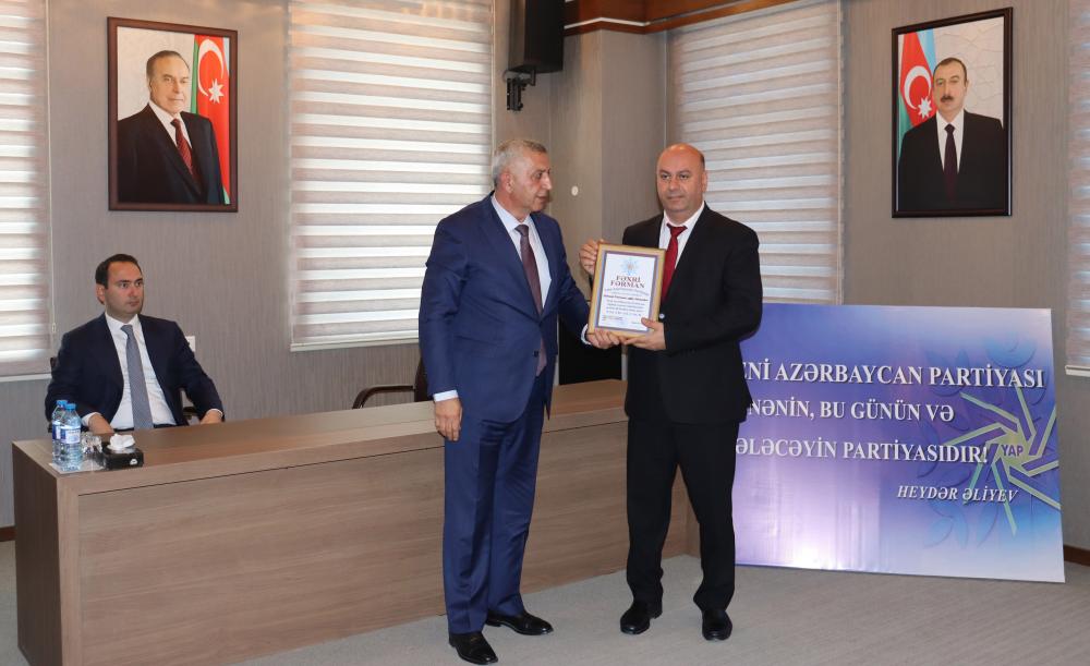 Sonda partiyanın ictimai-siyasi həyatında fəal iştirak edən partiya üzvlərinə fəxri fərman, Yeni Azərbaycan Partiyası sıralarına yeni qoşulanlara isə üzvlük vəsiqələri təqdim olunub.