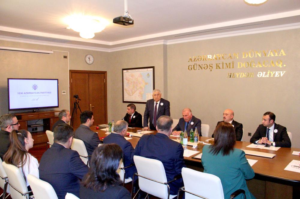 Təşkilatın ictimai-siyasi həyatında fərqlənən bir qrup partiya üzvlərinə fəxri fərmanlar, Yeni Azərbaycan Partiyası sıralarına yeni qoşulanlara isə üzvlük vəsiqələri təqdim olunub. Tədbir Yeni Azərbaycan Partiyasının Himni səsləndirilməsi ilə başa çatıb.