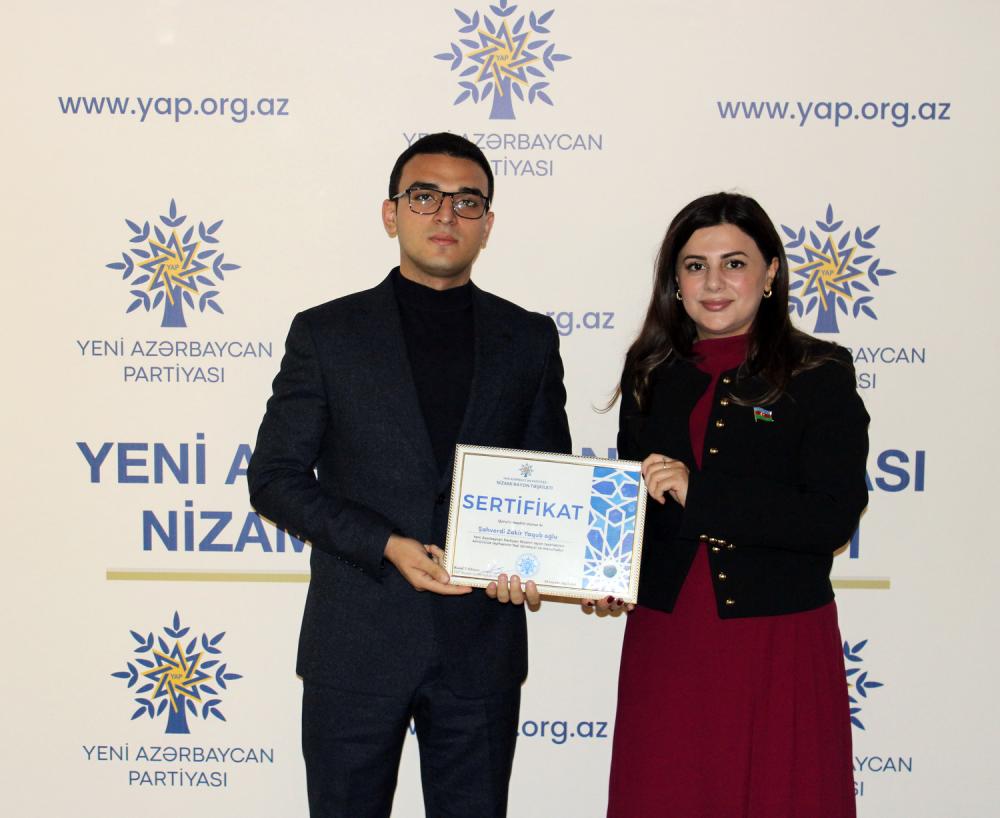 Tədbirin rəsmi hissəsinin sonunda xüsusi fəallıq göstərən, könüllülük fəaliyyətinin təbliğində aktiv iştirak edən, fəal təşkilatçılıq fəaliyyətlərinə və təşəbbüskarlıqlarına görə bir qrup könüllü təltif edilib, Yeni Azərbaycan Partiyasına üzv olmuş gənclərə vəsiqələr təqdim edilib.