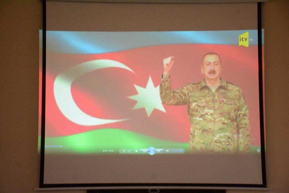 Sonra rayon icra hakimiyyətinin başçısı Müstəqim Məmmədov müasir Azərbaycanın inkişaf yolundan, respublika prezidentinin rəhbərliyi ilə ölkəmizin beynəlxalq aləmdə qazandığı nüfuzdan, söz sahibi olmasından, siyasətdə və iqtisadiyyatda qazanılan uğurlardan, Vətən müharibəsində qazanılan tarixi qələbədən bəhs edərək, bildirib ki, Müzəffər Ali Baş Komandanın qətiyyəti və uzaqgörən siyasəti nəticəsində Azərbaycanın ərazi bütövlüyü təmin olunub. Qeyd edilib ki, dövlət başçısının apardığı prisipial maraqlara əsaslanan siyasət xalq-lider birliyinin bariz nümunəsidir, xalq hər zaman onun apardığı siyasəti dəstəkləyir.