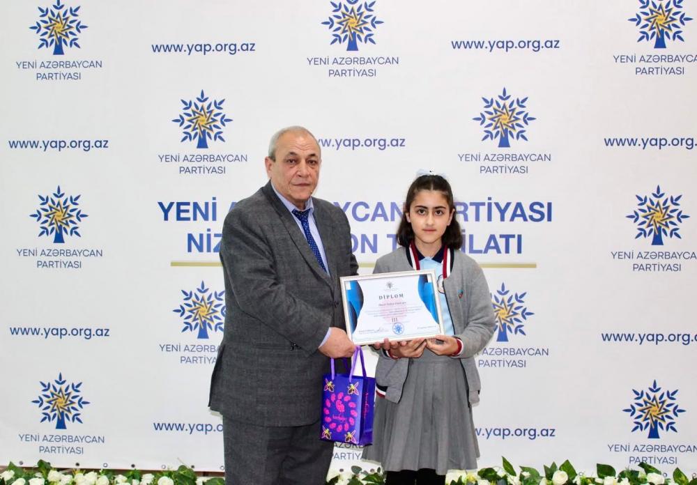 Çıxışlardan sonra Yeni Azərbaycan Partiyası Nizami rayon təşkilatının qanlı 20 yanvar faciəsinin ildönümü ilə əlaqədar “Qan yaddaşımızın 20 yanvar səhifəsi: milli iradənin zəfəri və qürur tarixi” mövzusunda elan etdiyi rəsm və inşa müsabiqəsinin qaliblərinin mükafatlandırılması mərasimi olub.