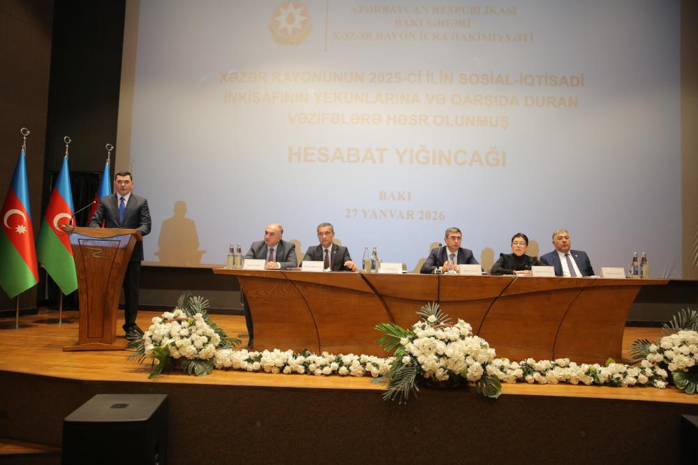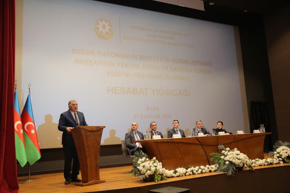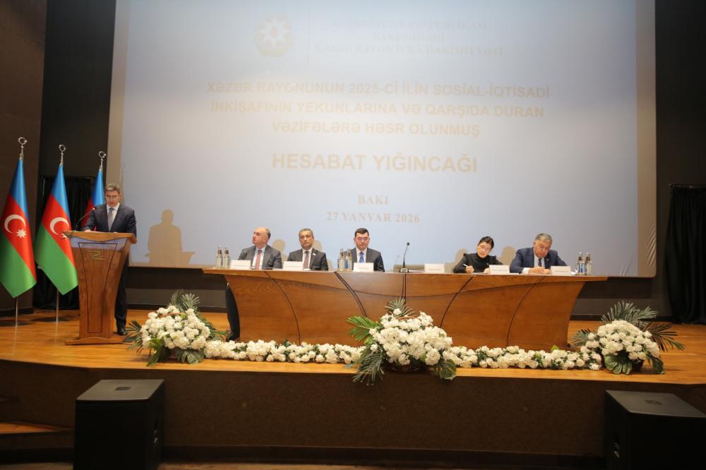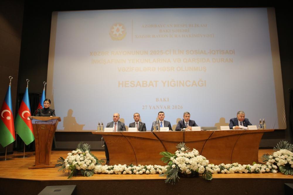 27 yanvar 2026-cı il tarixində Xəzər rayonunda 2025-ci ilin sosial-iqtisadi inkişafının yekunları və qarşıda duran vəzifələrə həsr olunmuş hesabat yığıncağı keçirilib.