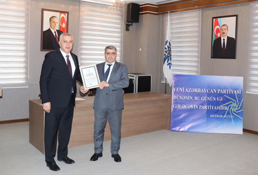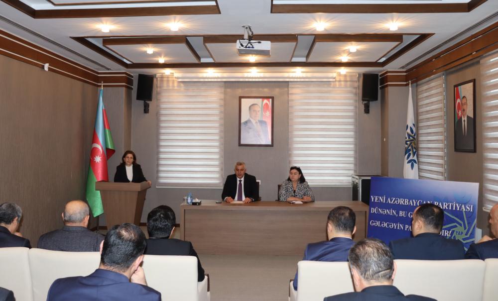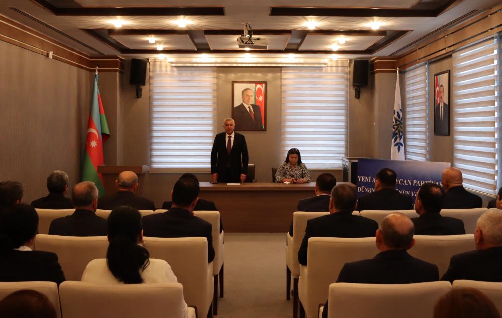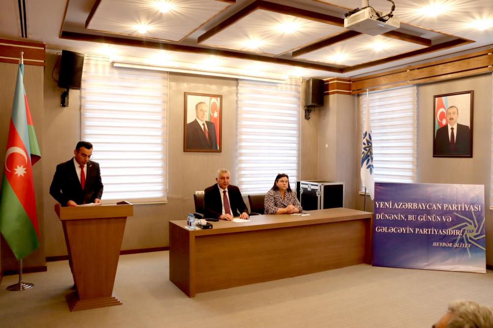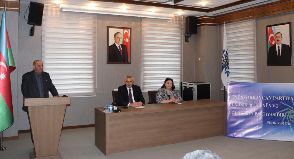 Partiya fəallarından – rayon İcra Hakimiyyəti Başçısının müavini Aynur Novruzova, partiya veteranı Qalib Həsənov, partiya fəallarından Azadə Kərimova, İbrahim Əfəndiyev, Könül Musayeva və Ülkər Əzizova çıxış edərək Yeni Azərbaycan Partiyasının xalqın etimadını dorğultmuş partiya olduğunu, ulu öndər Heydər Əliyevin siyasi kursunun Partiya sədri, Prezident İlham Əliyev tərəfindən uğurla davam etidirilərək Azərbaycanın güclü dövlətə çevrildiyini qeyd ediblər.