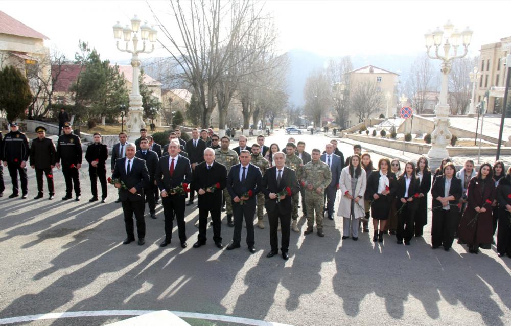 Əvvəlcə tədbir iştirakçıları Daşkəsən şəhərinin mərkəzində ucaldılmış xalqımızın Ümummilli Lideri Heydər Əliyevin abidəsini ziyarət ediblər, önünə gül dəstələri düzüblər.