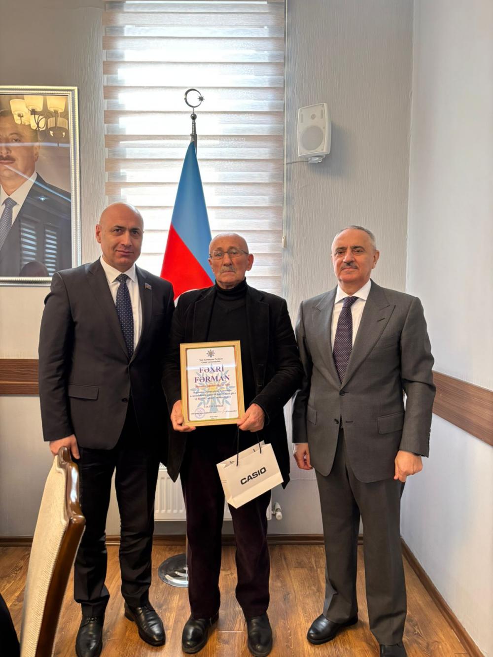 Sonda partiya sıralarında uzun illər səmərəli fəaliyyəti ilə seçilən bir qrup veteran fəxri fərmanlarla təltif olunub. Eyni zamanda Yeni Azərbaycan Partiyası sıralarına yeni qoşulan gənclərə üzvlük vəsiqələri təqdim olunub.