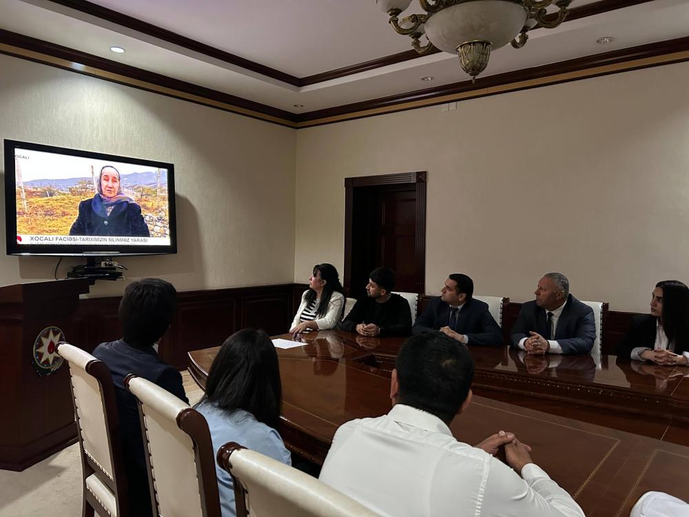 Tədbir çərçivəsində Xocalıya həsr olunmuş videoçarx nümayiş etdirilib. Videoçarxda işğaldan azad olunmuş ərazilərdə aparılan abadlıq və quruculuq işlərindən bəhs olunub, şəhərin yenidən dirçəliş mərhələsinə qədəm qoyduğu diqqətə çatdırılıb.
