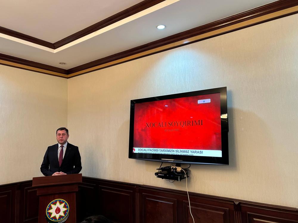Tədbiri giriş sözü ilə açan Tərtər rayon Heydər Əliyev Mərkəzinin direktoru Səlimə Yusibova bildirib ki, Xocalı Azərbaycan tarixinin ən ağrılı səhifələrindən biridir. Qeyd olunub ki, 26 fevral 1992-ci il tarixində erməni silahlı qüvvələrinin hücumu nəticəsində şəhərdə dinc sakinlərə qarşı soyqırımı törədilib, yüzlərlə insan qətlə yetirilib, yaralanıb və itkin düşüb.