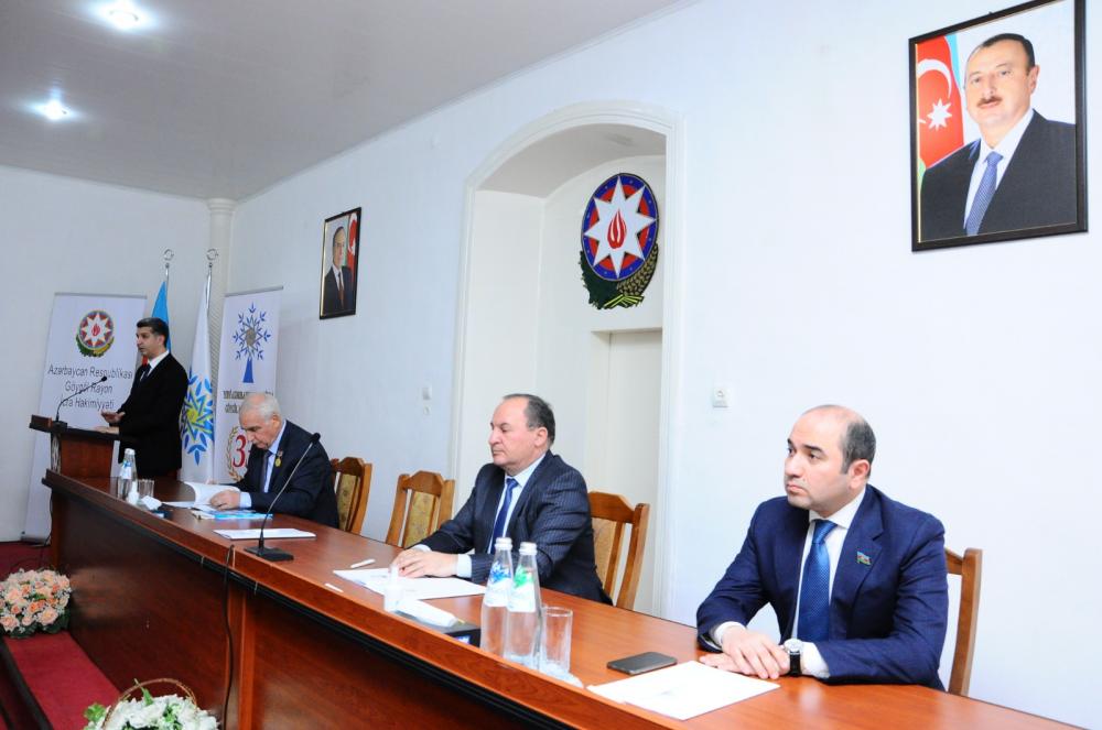Göygöl Rayon İcra Hakimiyyətinin başçısı Vüqar Novruzov giriş nitqi ilə çıxış edərək YAP Göygöl rayon təşkilatının yaranmasının 33 illiyi münasibətilə tədbir iştirakşılarını təbrik edib və Yeni Azərbaycan Partiyasının ölkəmizin hər bir uğurunda xüsusi payı olduğunu vurğulayıb. Partiyanın keçdiyi şərəfli yoldan bəhs edərək, ilk gündən tutduğu yola, əqidəyə sadiqlik nümayiş etdirməsi, onun ümumxalq partiyası kimi nüfuz qazanmasını şərtləndirdiyini bildirib. Qeyd edib ki, Yeni Azərbaycan Partiyası öz sıralarında cəmiyyətdə böyük nüfuza malik olan insanları birləşdirir, xalqın arzu və istəklərinin həyata keçirilməsinə öz töhfələrini verir. Vüqar Novruzov Prezident İlham Əliyevin müdrik idarəçiliyi ilə qəbul edilən strateji qərarların regionda sabitliyin qorunmasına, dövlət müstəqilliyinin daha da möhkəmləndirilməsinə böyük töhfələr verdiyini bildirib, sürətlə inkişaf edən ölkəmizi uğurlu gələcəyə aparan bu yolda hər bir Azərbaycan vətəndaşı Yeni Azərbaycan Partiyasının Sədri, Prezident İlham Əliyevin siyasi kursunu dəstəklədiyini və böyük əzmlə dövlətin və xalqın mənafeyi naminə səy göstərdiyini diqqətə çatdırıb.