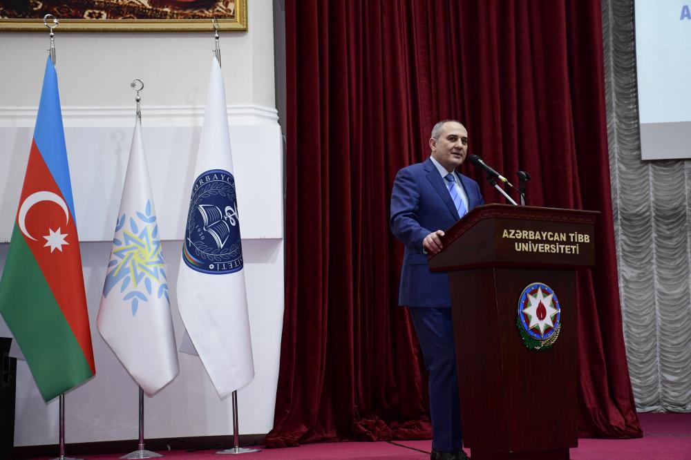 O qeyd edib ki, müəyyən xarici dairələr ölkəmizin uğurlarını həzm edə bilmirlər, ona görə də müxtəlif vasitələrlə təzyiq göstərməyə cəhd edirlər: “Həmin dairələr gənclərimizi də zərərli ideoloji istiqamətlərə yönəltməyə çalışırlar. Lakin vətənpərvər Azərbaycan gəncliyi hər zaman ayıq-sayıqdır. Gənclərlə ideoloji iş Azərbaycan Tibb Universitetində daim diqqət mərkəzindədir”.