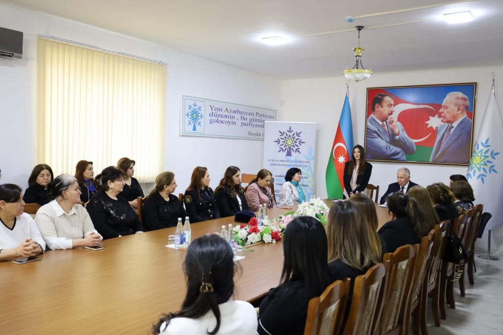 Çıxış edən YAP Şəmkir rayon təşkilatının sədri Fəxrəddin Vəliyev bildirib ki, xalqımıza xas ənənəvi ailə dəyərlərinə sadiq qalan çağdaş Azərbaycan xanımları, eyni zamanda, güclü müasirlik duyğusuna və yenilikçi təbiətə sahibdirlər. Mədəni tərəqqi yolunda əzmlə çalışmış maarifpərvər sələflərinin yaradıcı düşüncəli davamçıları kimi onların hazırkı yüksək ictimai nüfuzu və səhiyyə, təhsil, mədəniyyət, elm sahələrindəki mühüm nailiyyətləri ölkəmizin hərtərəfli inkişafını səciyyələndirən amillərdəndir. Azərbaycan qadınları gənc nəslin vətənə, milli ideallarımızın təcəssümü olan dövlətçiliyimizə sədaqət ruhunda yetişməsini bundan sonra da xüsusi diqqətdə saxlayacaq, cəmiyyətin yüksəlişinə ahəngdarlıq qazandıran dolğun sosial-mədəni fəaliyyətləri ilə parlaq gələcəyimiz naminə quruculuq işlərində yaxından iştirak edəcəklər.