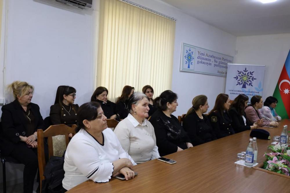 Şəmkirdə Yeni Azərbaycan Partiyasının təşkilatçılığı ilə 8 Mart Beynəlxalq Qadınlar Gününə həsr olunmuş "Azərbaycan qadını yüksək mənəvi keyfiyyətlərin daşıyıcısıdır” mövzusunda tədbir keçirildi.