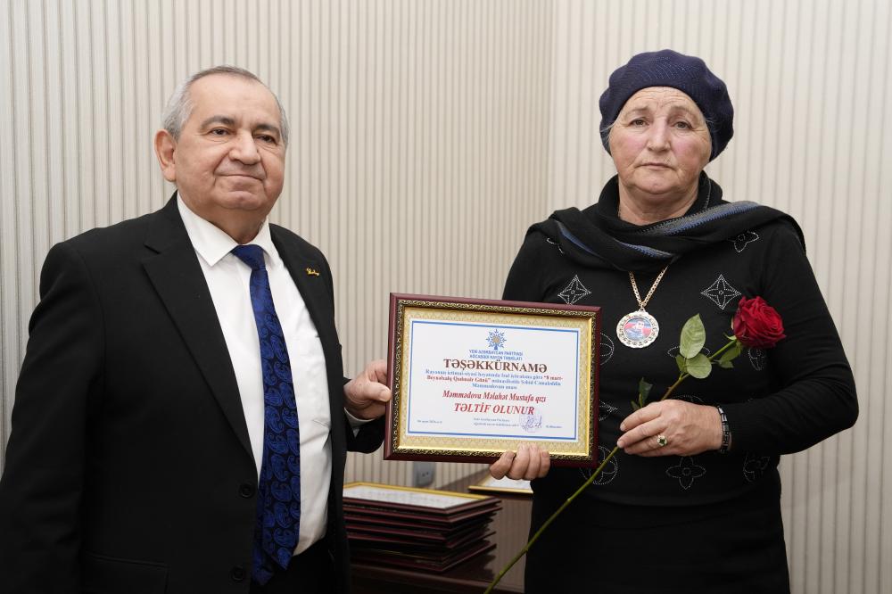 Tədbirdə rayonun ictimai-siyasi həyatında fərqlənən YAP fəalları və Şəhid ailələrinin üzvlərinə Fəxri Fərman və Təşəkkürnamələr təqdim edilmişdir.