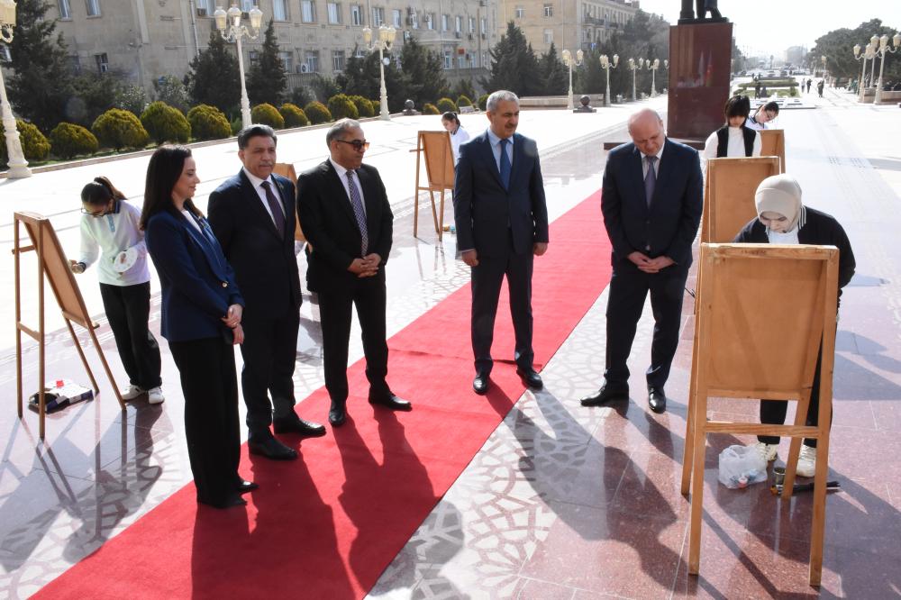 Əvvəlcə Heydər Əliyev Mərkəzinin binası qarşısında Ümummilli lider Heydər Əliyevin abidəsi önünə gül dəstələri düzülməklə əziz xatirəsi yad olunub.