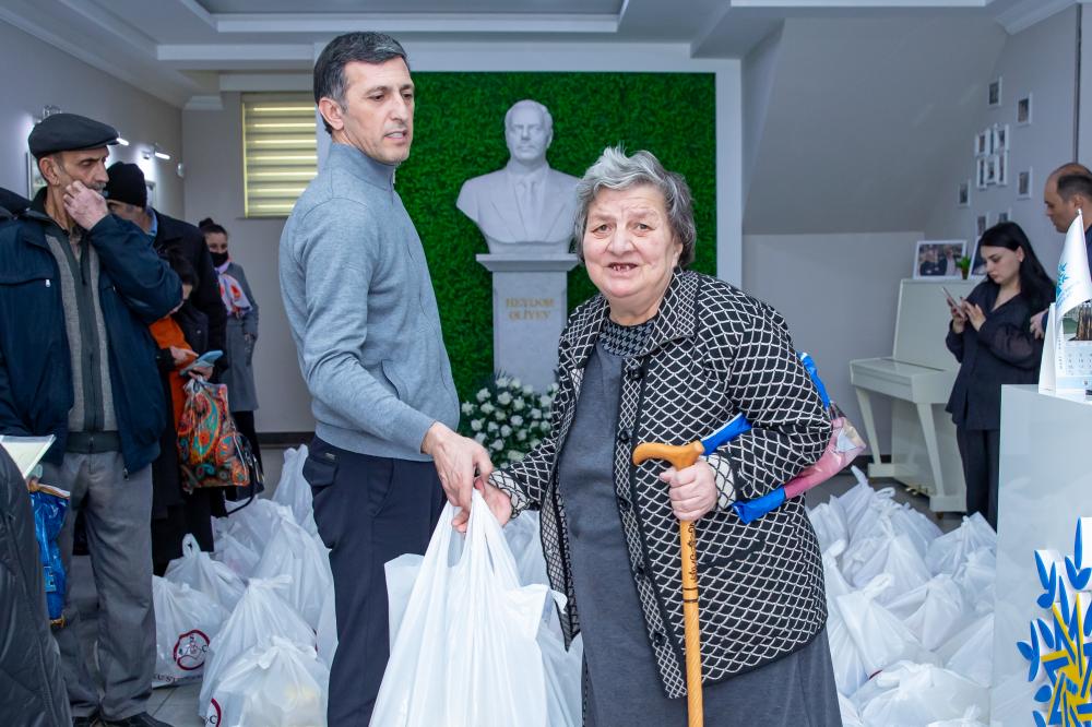 Aksiya çərçivəsində rayon ərazisində yaşayan şəhid, qazi və aztəminatlı 120 ailəyə gündəlik ərzaq məhsullarından ibarət bayram sovqatı təqdim olunub.