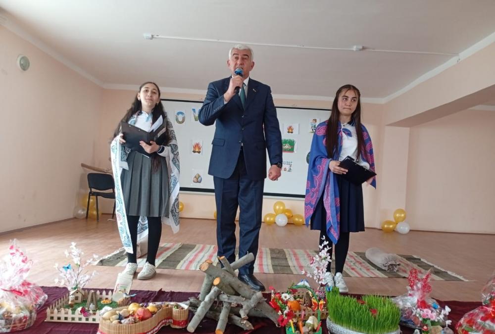Məktəbin qarşısındakı geniş meydanda Bayram tonqalı çatılıb, tədbirin keçirildiyi zala yaraşıqlı xalça salınıb, xalçanın üzərinə rayonumuzun adət-ənənələrini əks etdirən qədim əşyalar qoyulub. Novruzun simvolu olan şəkərbura, paxlava və səmənili xonçalar göz oxşayıb.