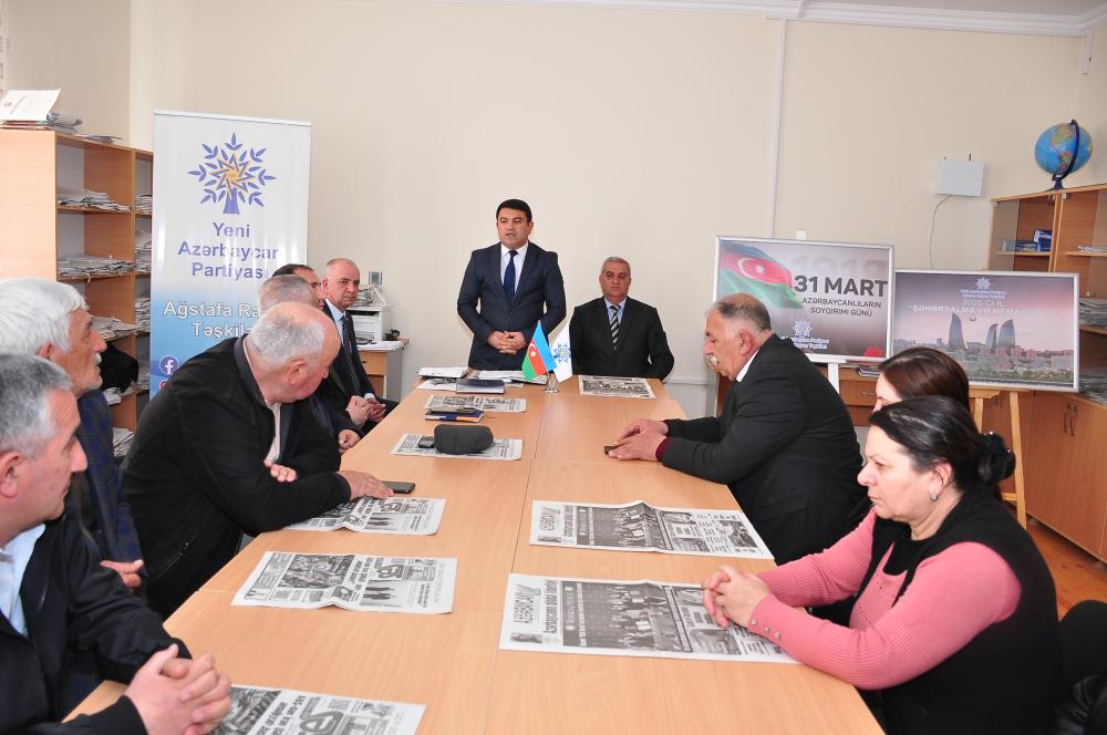 Tədbiri giriş sözü ilə açan YAP Ağstafa rayon təşkilatının sədr müavini Yalçın İsmayılov bildirib ki, qonşu xalqların torpaqlarını zəbt edərək “böyük Ermənistan” ideyasını gerçəkləşdirmək məqsədi güdən ermənilər tarix boyunca soydaşlarımıza qarşı etnik təmizləmə, deportasiya və soyqırımları həyata keçiriblər. Bu soyqırımı hadisələrinin ən dəhşətlilərindən biri də daşnak-bolşevik silahlı dəstələri tərəfindən 1918-ci ilin mart-aprel aylarında qəddarlıqla törədilmiş kütləvi qırğınlardır. Azərbaycan tarixinə “31 Mart soyqırımı” kimi yazılan həmin hadisələr zamanı on minlərlə dinc azərbaycanlı yalnız milli mənsubiyyətinə görə amansızcasına qətlə yetirilib. Azərbaycanlılara qarşı törədilən bu bəşəri cinayət barədə həqiqətlərin ölkə və dünya ictimaiyyətinə daha dolğun çatdırılması məqsədilə Azərbaycan Prezidenti İlham Əliyevin 2018-ci ildə - soyqırımının 100 illiyi ərəfəsində Sərəncam imzalayıb. Bu məqsədlə xüsusi tədbirlər planı hazırlanaraq həyata keçirilib.