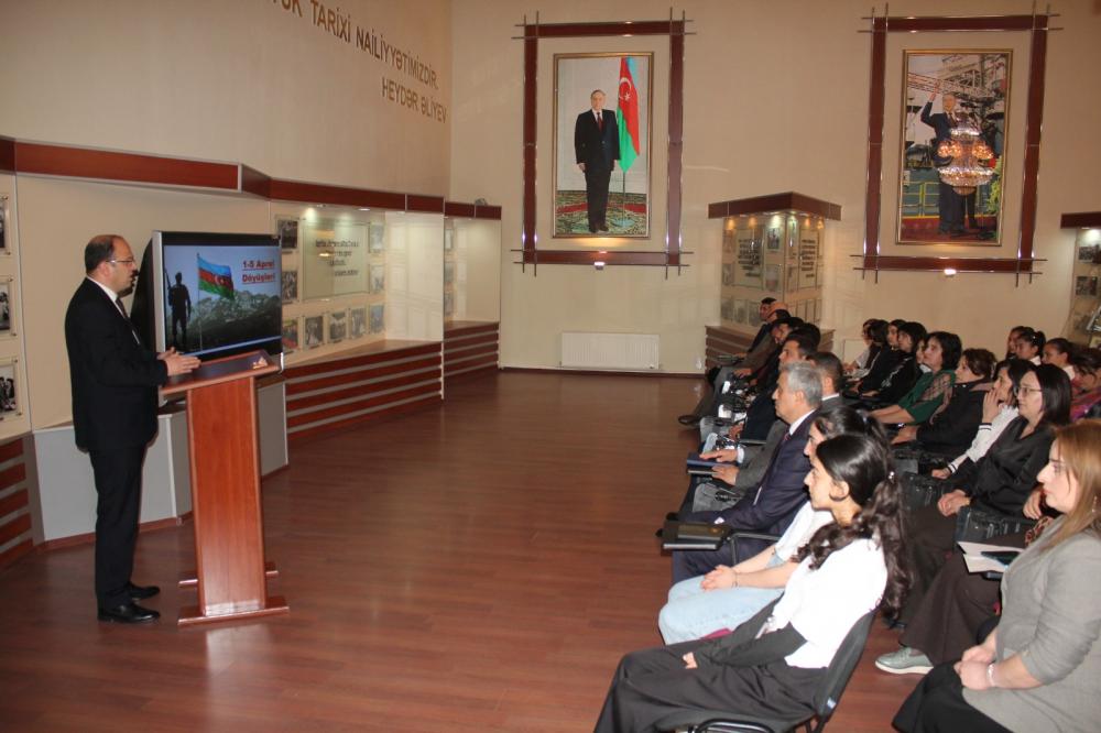 Tədbir Aprel döyüşlərinin 10 illiyində şəhidlərimizin xatirəsinin anılması və xalqımızın şanlı Zəfər salnaməsini gənc nəslə çatdırmaq məqsədi daşıyıb.