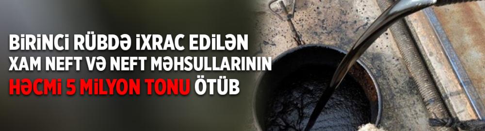 - Birinci rübdə ixrac edilən xam neft və neft məhsullarının həcmi 5 milyon tonu ötüb