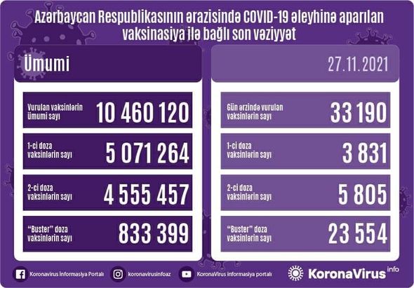 Ölkədə bu gün peyvənd olunanların sayı AÇIQLANDI