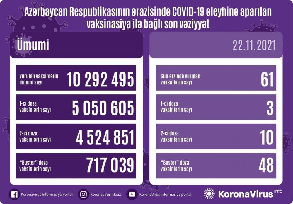 COVID-19 əleyhinə peyvənd olunanların sayı açıqlanıb